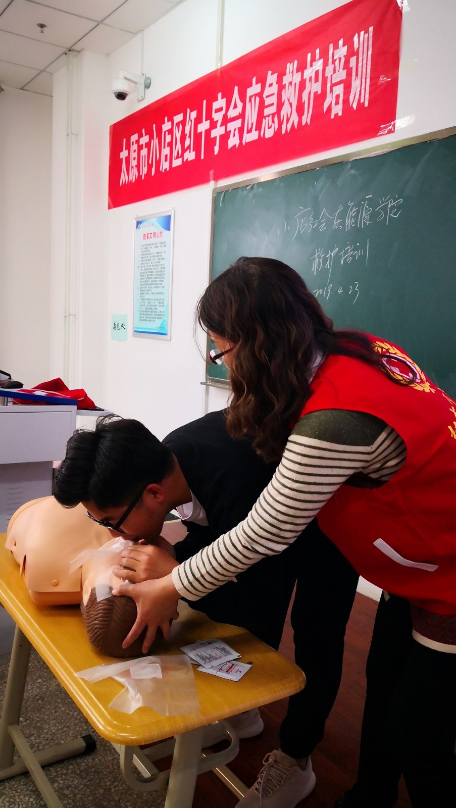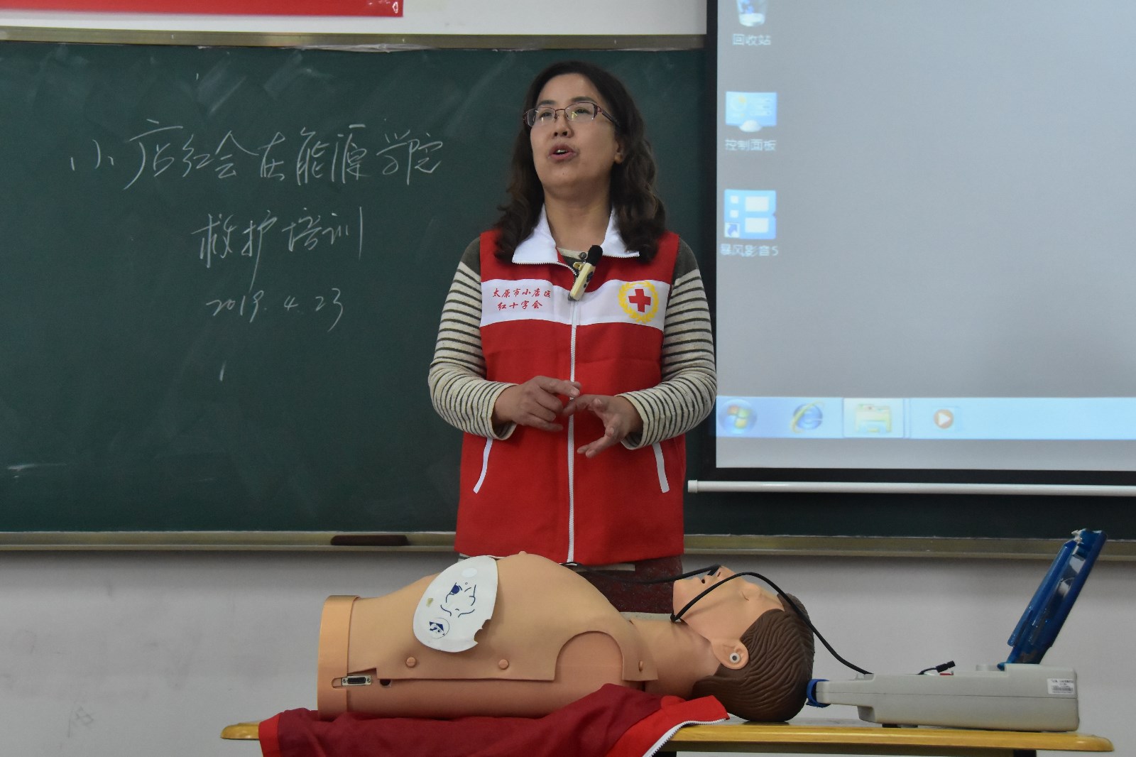 为了迎接5月8日第69个世界红十字日的来临,为了提高同学们的安全意识,提升对突发事件和意外伤害事故的应急救援和自救、互救能力,我院卫生所在学生工作部(处)和团委的协助下于4月23日下午成功举办了“红宝石9999hbs在线登录应急救护培训暨太原市小店区红十字会应急救护培训”活动。参加培训的学生是各系各年级各班的生活委员,共约90余人参加培训。我们聘请了太原市小店区红十字会应急救护培训中心医学高级讲师、中国救护培训师、中国心肺复苏导师张晓燕老师进行培训。