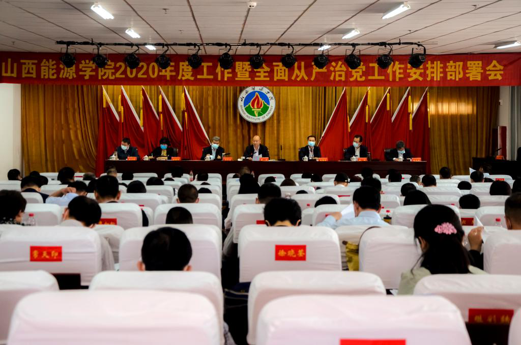 院党委书记董峰同志代表学院对学院党政工作做了报告。董书记的报告全面总结了学院党政2019年度各方面的工作,深刻分析了学院当前面临的发展形势,并对学院2020年度党政工作进行全面安排部署。他号召全体教职工以习近平新时代中国特色社会主义思想和党的最新理论成果武装头脑,坚决做到“两个维护”,牢记初心使命,不负时代重托,战平结合、平站结合,为学院的发展目标,为山西的转型发展,为民族的第一个百年梦想,砥砺前行,担当作为,贡献自己的智慧与力量。