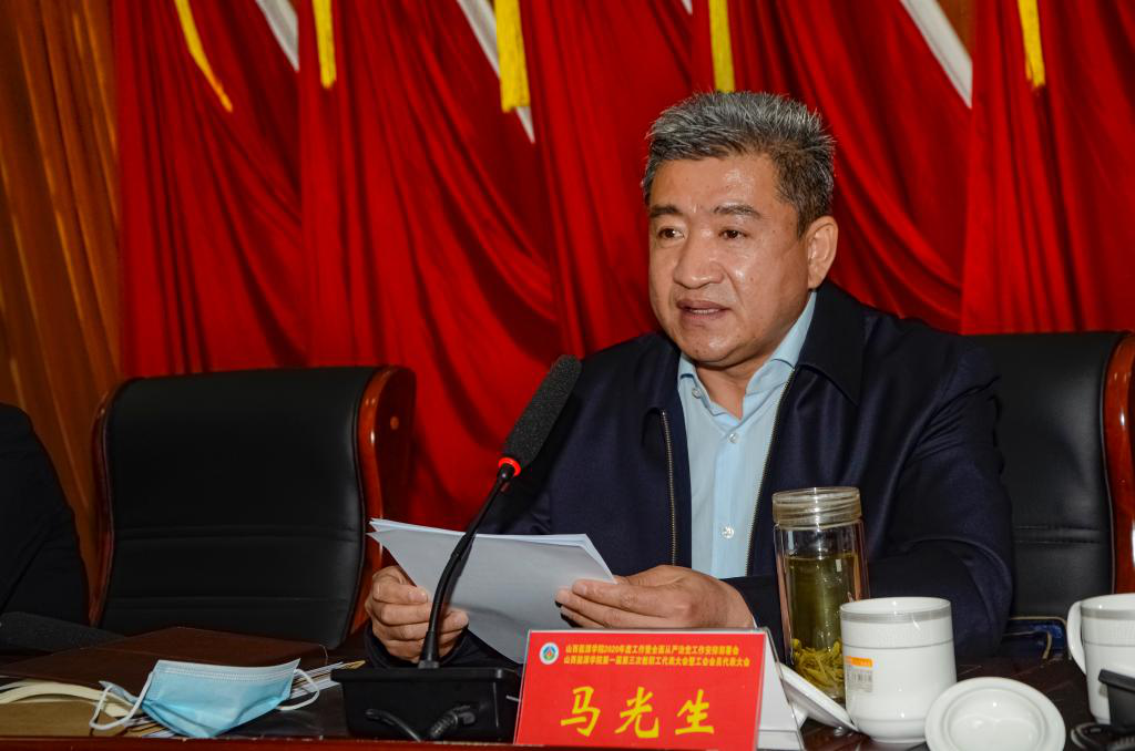 分管工会工作的院党委副书记马光生同志作了题为《砥砺初心使命 强化政治引领 谱写工会工作新篇章》的工会工作报告。报告实事求是的回顾和总结了我院工会委员会2019年一年来在院党委和上级工会组织的领导下,在学院行政的大力支持下,院工会在落实工会组织的政治责任,加强对职工思想引领;保障职工民主权利;组织职工建功立业;维护职工合法权益;履行工会的职能等方面所做工作,并指出了存在的差距和不足,结合中央精神和全总十七届三次执委会议精神提出了2020年我院工会工作的总体要求,并从五个方面提出了2020年院工会的整体工作思路。