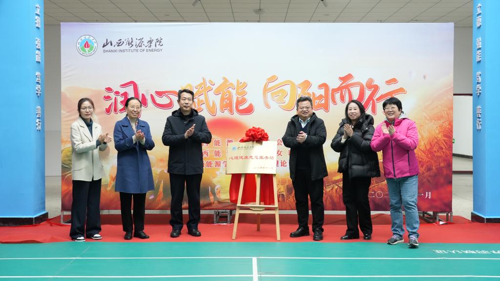 党委副书记、院长冯国瑞、党委副书记曲晋山、党委副书记桑楠、工会主席马蔚东、思政部副主任张明花、计算机系副书记闫斐为“心理健康志愿服务站”揭牌。