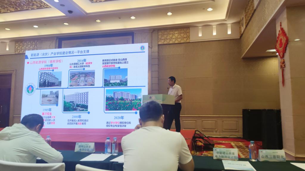 省教育厅、发改委、工信厅、能源局相关处室领导出席会议并讲话。省电力公司、省电科院、国家能源集团、华能、华电、大唐、中广核、中核汇能、华润电力、三峡集团、华为数字能源、山西粤电能源、京能、阳光电源、山能国际、中国电建、晋能、中铁工程设计咨询、三晋阳光、富盛达、中北大学等30余家新能源企业及高校代表参加本次会议。我院党委副书记、院长冯国瑞出席会议并致辞,院党委委员、副院长刘汉涛主持会议,院学工部、教务部、科技产业部、团委、矿业系、能动系、能化系主要领导及相关教师参加会议。