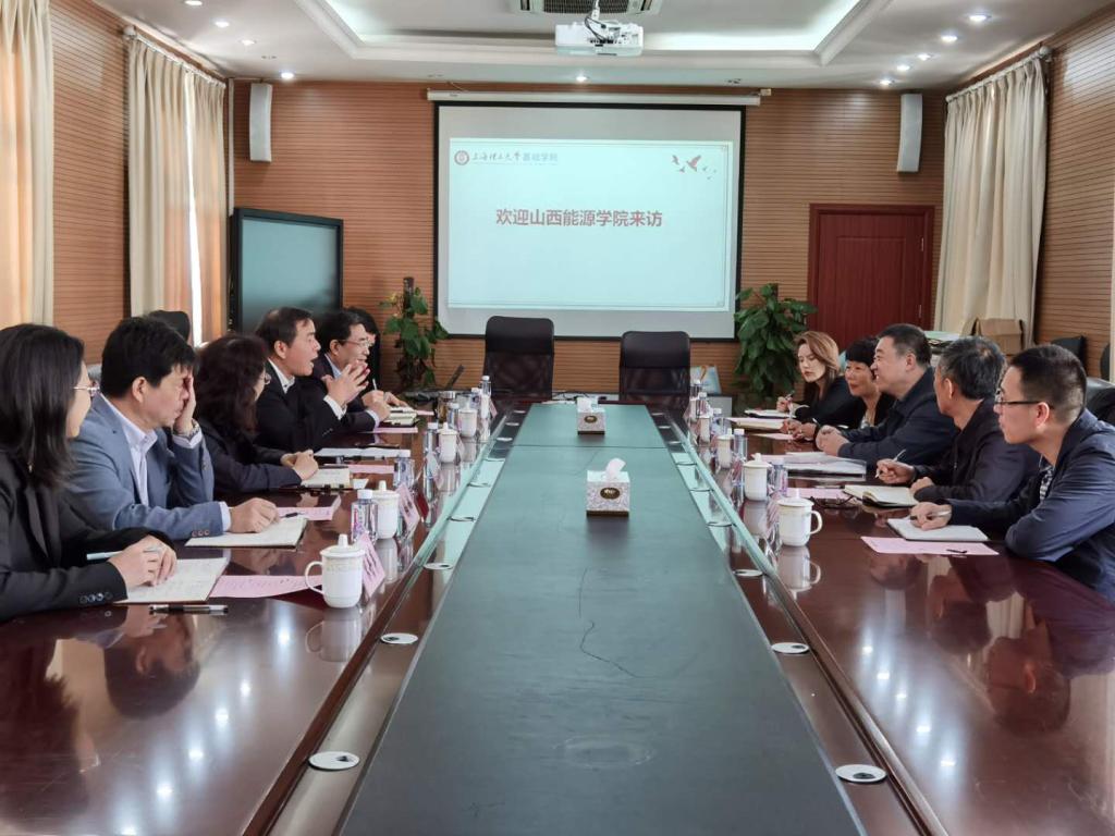 党委副书记、副校长盛春对我院一行的到访表示热烈的欢迎,并介绍了上海理工大学的概况以及基础学院的发展现状。我院副院长孟文俊介绍了我院的办学历史与特色,我院在培养能源行业人才方面所做的工作以及此行的调研学习目的。