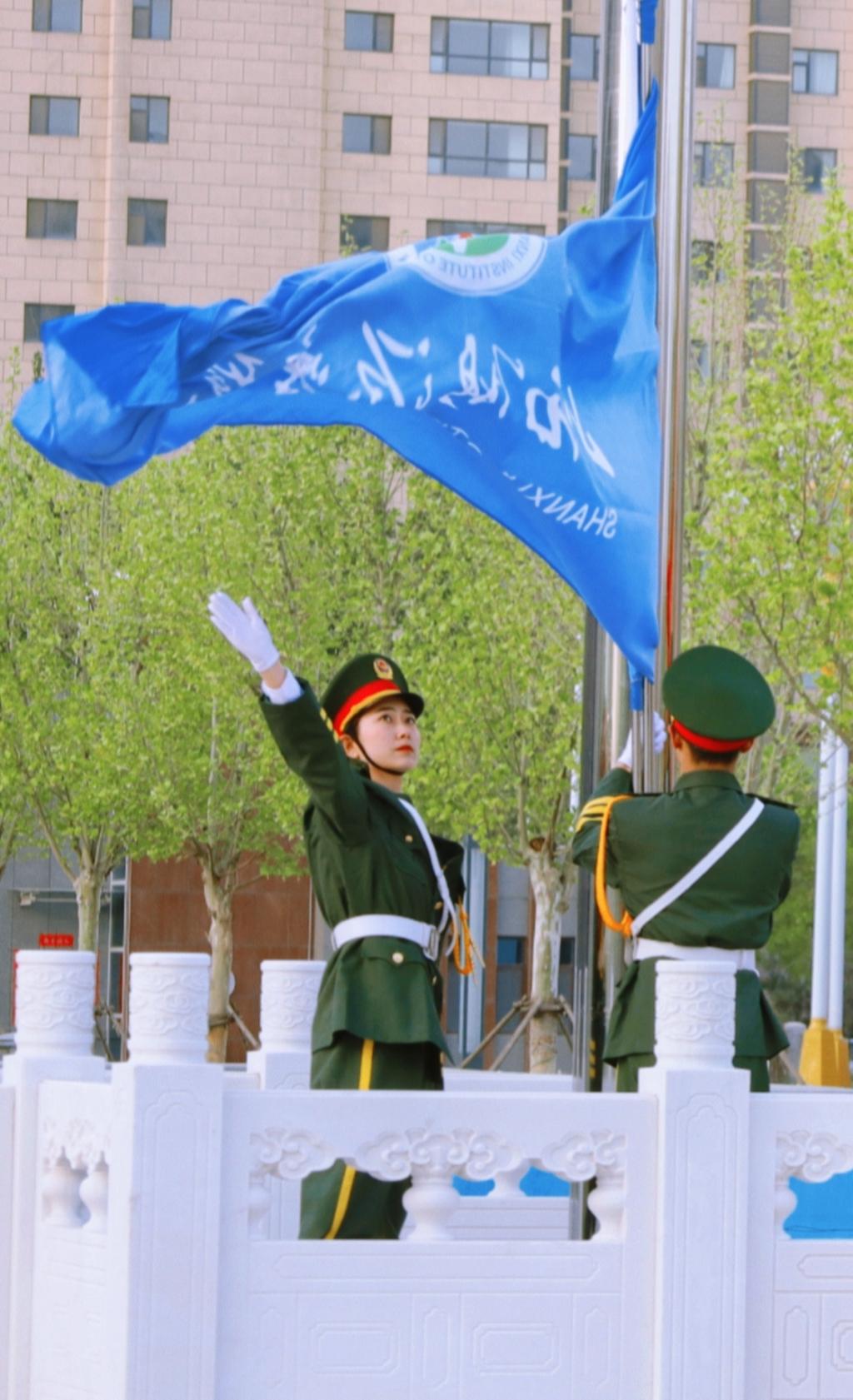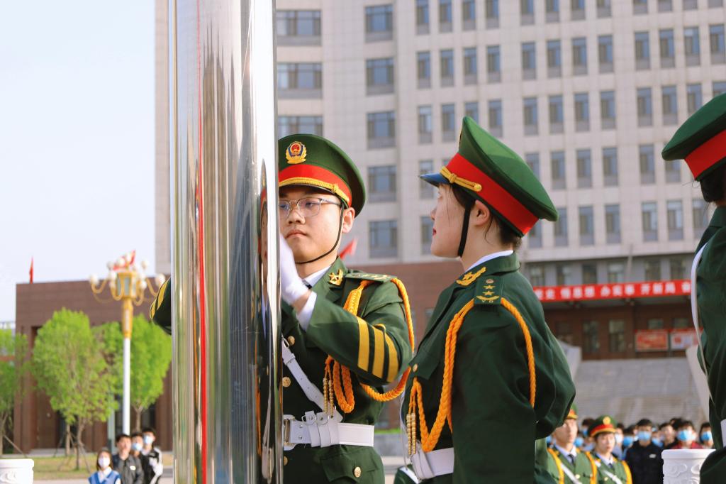 紧接着,伴随着《青春绽放》的激昂旋律,两面校旗在清晨微凉的春风中缓缓升起,全体师生注视着红蓝两面校旗,如同火焰一般点燃了同学们内心的无比热情,成为红宝石9999hbs在线登录的上空的一抹绚丽的色彩。
