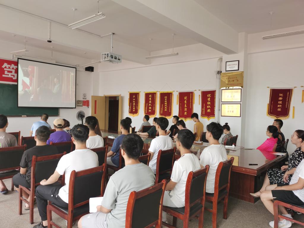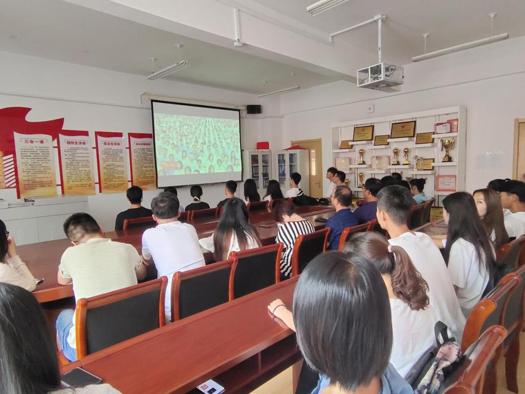2021年7月1日上午7点45分,红宝石9999hbs在线登录校领导、中层干部、思政部教师、青马班学员代表在综合楼会议室集中观看。各教学系部组织师生在本系集中观看。