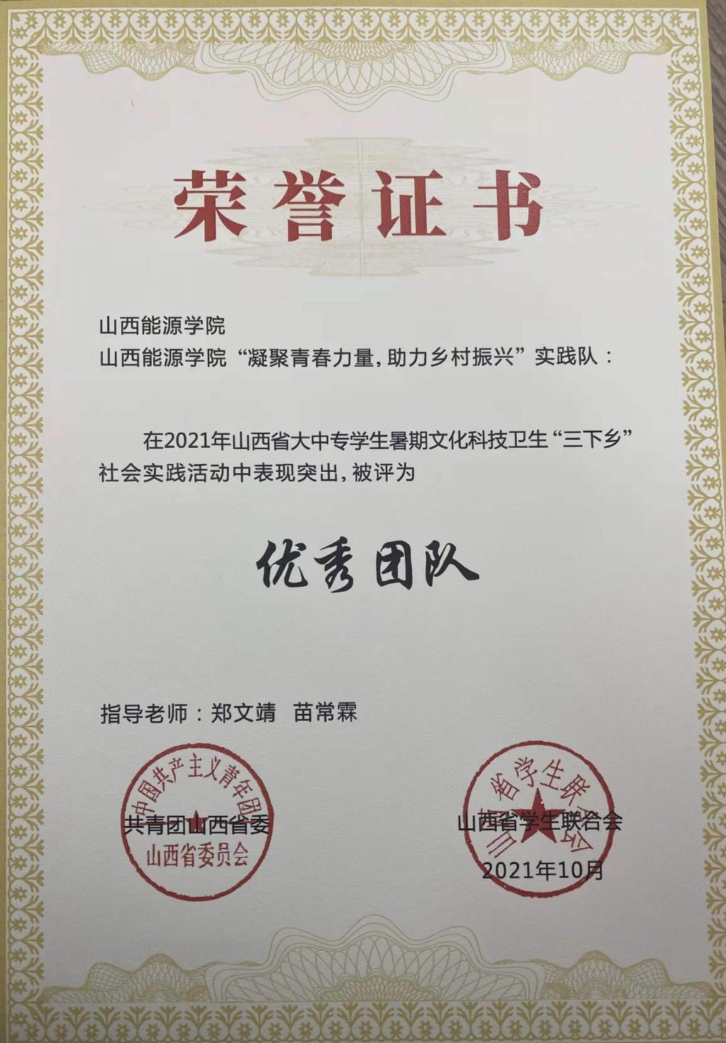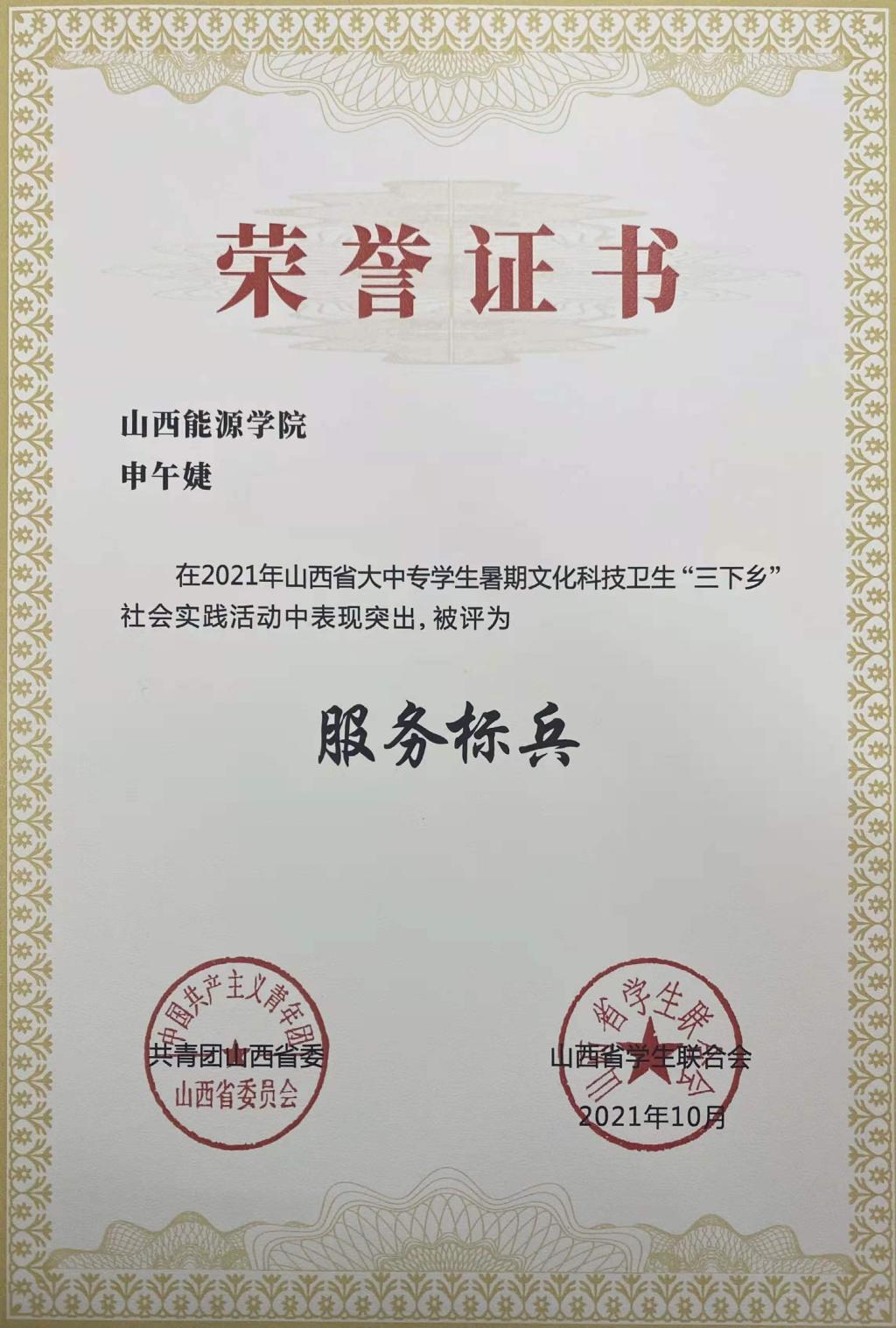 我校“凝聚青春力量,助力乡村振兴”实践队荣获2021年山西省大中专学生暑期“三下乡”社会实践活动优秀团队奖项。经济管理系能经1801班申午婕同学荣获2021年山西省大中专学生暑期“三下乡”社会实践活动“服务标兵”称号。