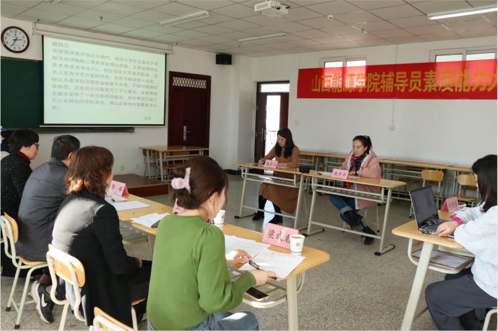 本次辅导员素质能力大赛前期筹备工作为期一个月,赛前特邀山西省第七届高校辅导员素质能力大赛金奖获得者中北大学专职辅导员郭乐祥、山西财经大学潘玥老师对我校专职辅导员进行培训指导,旨在以赛促建、以赛促学,激发我校辅导员的工作动力和活力,推动辅导员队伍的思想建设、能力建设、团队建设、作风建设。