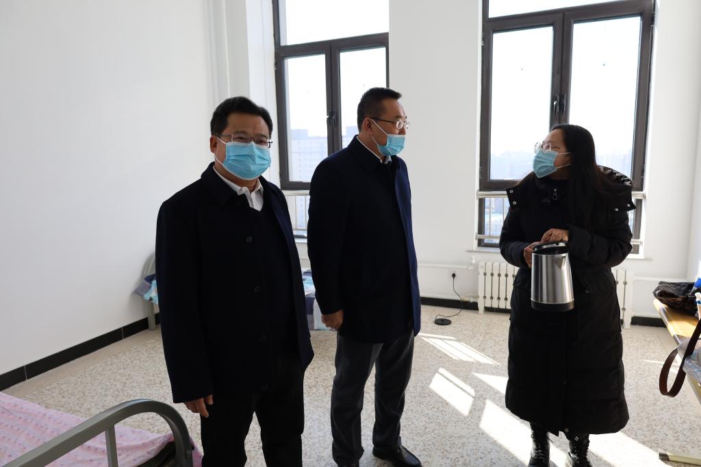 2022年2月21日上午九点半,校党委书记冯锋、副院长(主持行政工作)冯国瑞、副院长孙光辉带领我校疫情防控办各成员单位负责人对我校疫情防控工作进行督导检查。
