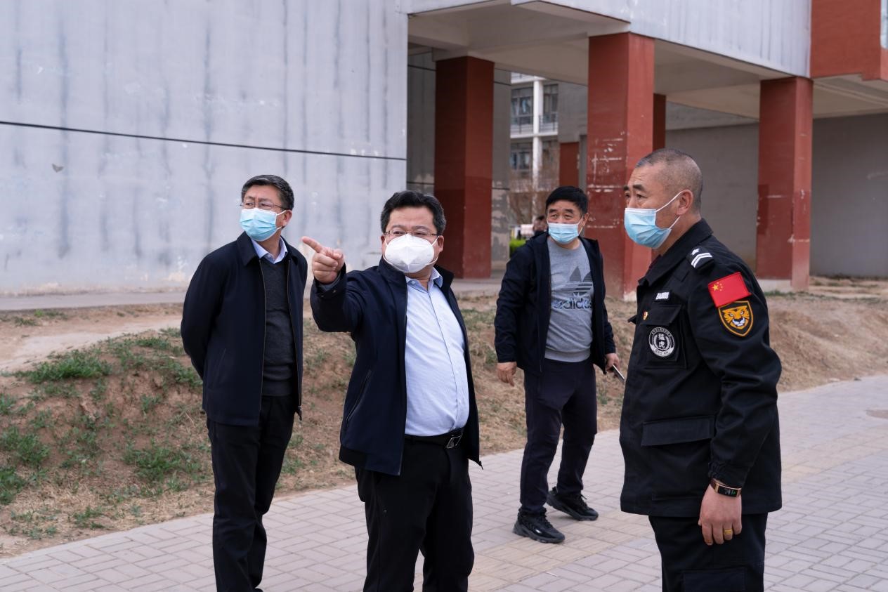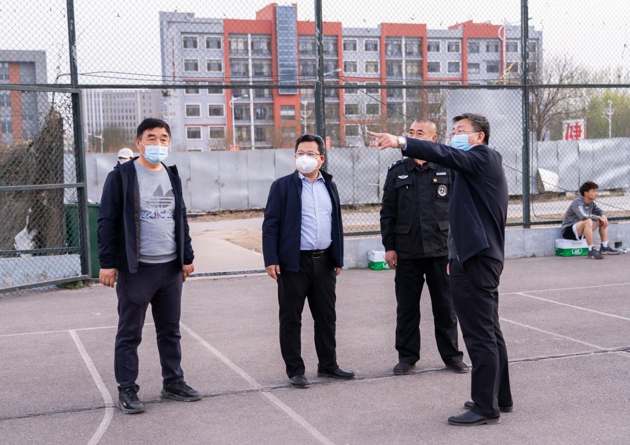 4月8日下午,在校党委书记冯锋的安排下,党委副书记、副院长冯国瑞(主持行政工作)深入校园,针对疫情防控的薄弱环节,围绕我校东侧围墙问题、篮球场设施建设等工作进行调研并指导。党委委员、副院长孙光辉,保卫部负责人陪同调研。