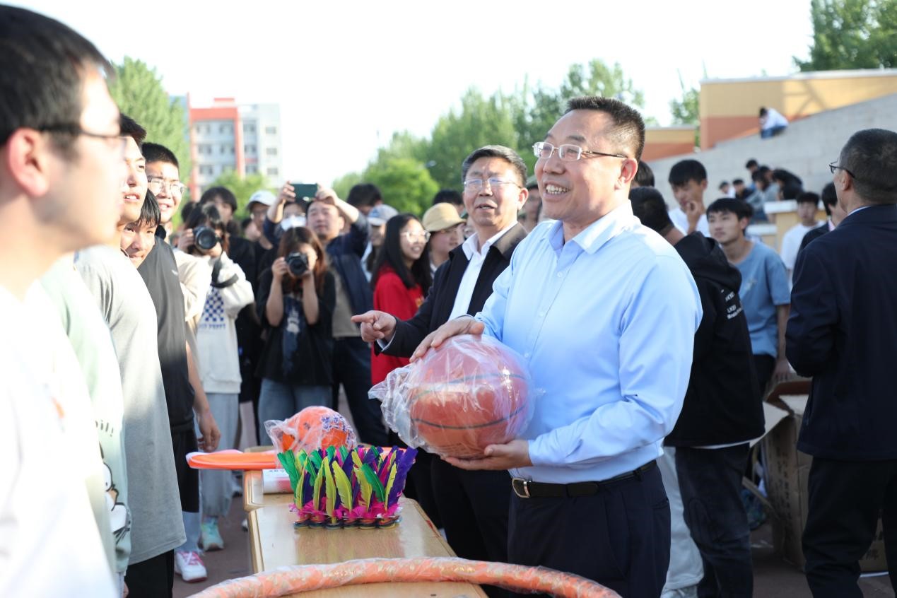 为切实做好我校情防控工作,进一步丰富封闭管理期间学生校园文化生活,强化在校学生身体素质,树立科学抗疫的理念,营造青春活力、健康向上、和谐有序的校园氛围,我校投入9万余元,购置了包括篮球、足球、羽毛球、呼啦圈等约3000多件体育用品,并于5月3日下午向学生发放。校党委书记冯锋,党委副书记、副院长冯国瑞(主持行政工作),党委委员、副院长孙光辉及主要中层领导干部到场亲自参与分发工作,各系(院)同学在场有序排队,依次领取各类器材。