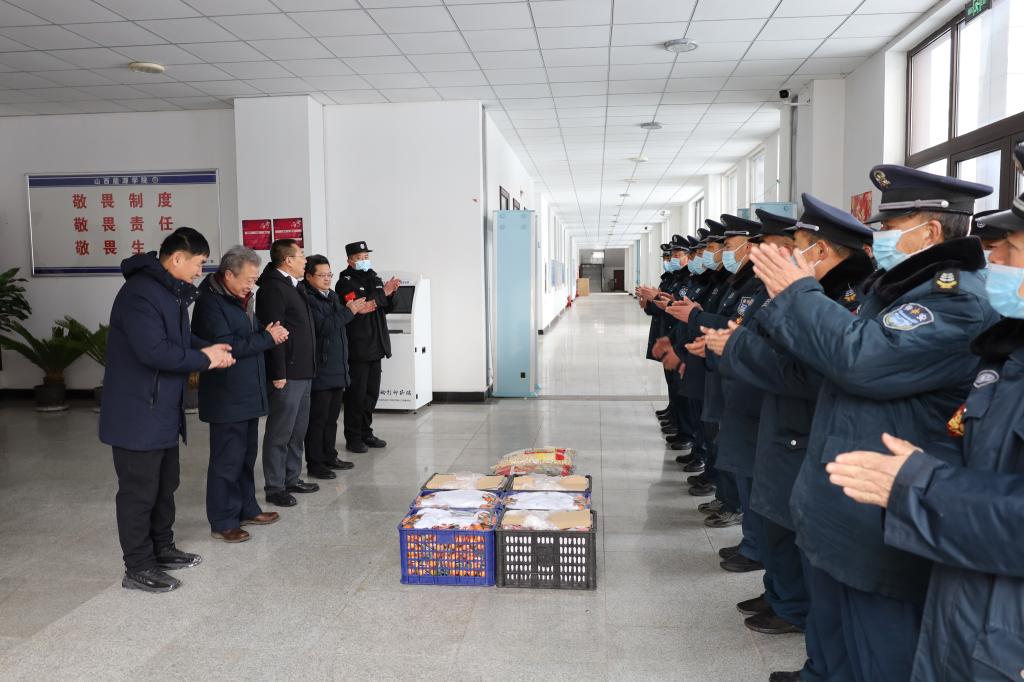 1月14日上午,农历小年,瑞雪兆丰年,衷心祝福至,校党委书记冯锋,党委副书记、副院长(主持行政工作)冯国瑞,党委委员、宣传统战部部长、办公室主任张玉福等先后到许坦校区和榆次校区看望慰问坚守在一线的工作人员,并送去了新春祝福、对联和慰问品等。同时,对许坦校区固定资产的盘活利用、榆次校区后勤保障及校园安全进行了调研。