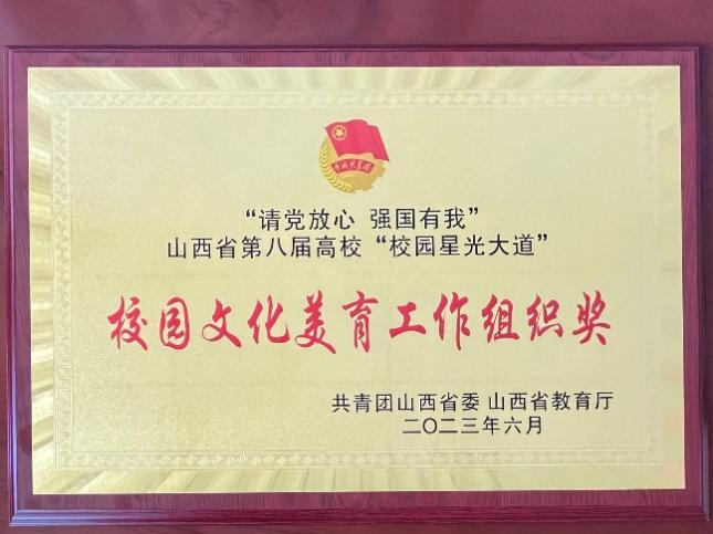 6月11日晚,“校园星光大道”颁奖晚会在山西工商学院体育馆举行,来自太原理工大学、山西大学等全省近40所高校的团委书记、指导老师受邀到达现场。在本次颁奖晚会上,除颁发个人奖之外,还颁发了校园文化美育工作组织奖和校园文化美育工作特色奖,我校荣获校园文化美育工作组织奖。