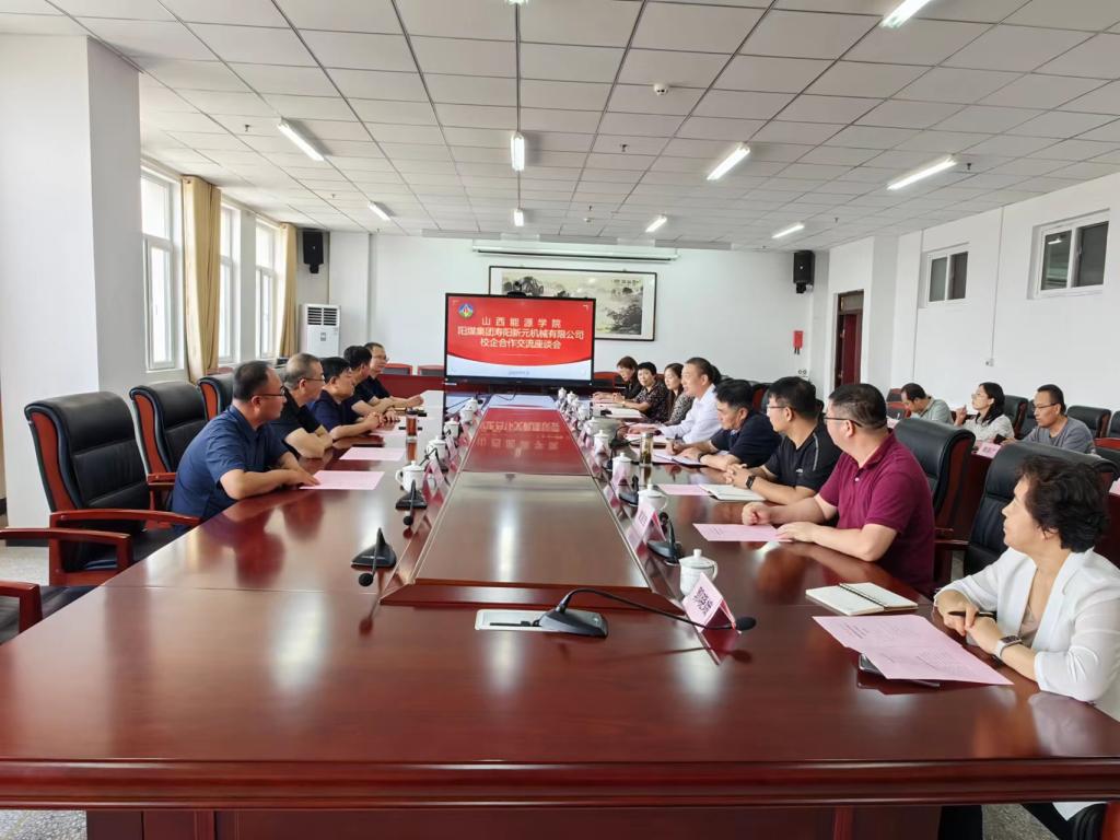 为深化校企合作,实现资源共享、优势互补、共同发展,9月1日下午,阳煤集团新元机械有限公司董事长李千保、执行董事武建国、总经理芦江、总工程师卢洪波、研发中心主任李正博一行前来我校召开校企合作交流座谈会。会前,冯国瑞院长亲切会见了阳煤集团新元机械有限公司一行,并对他们的到来表示热烈的欢迎,表示期待双方在产学研等方面开展深度合作,实现共赢发展。