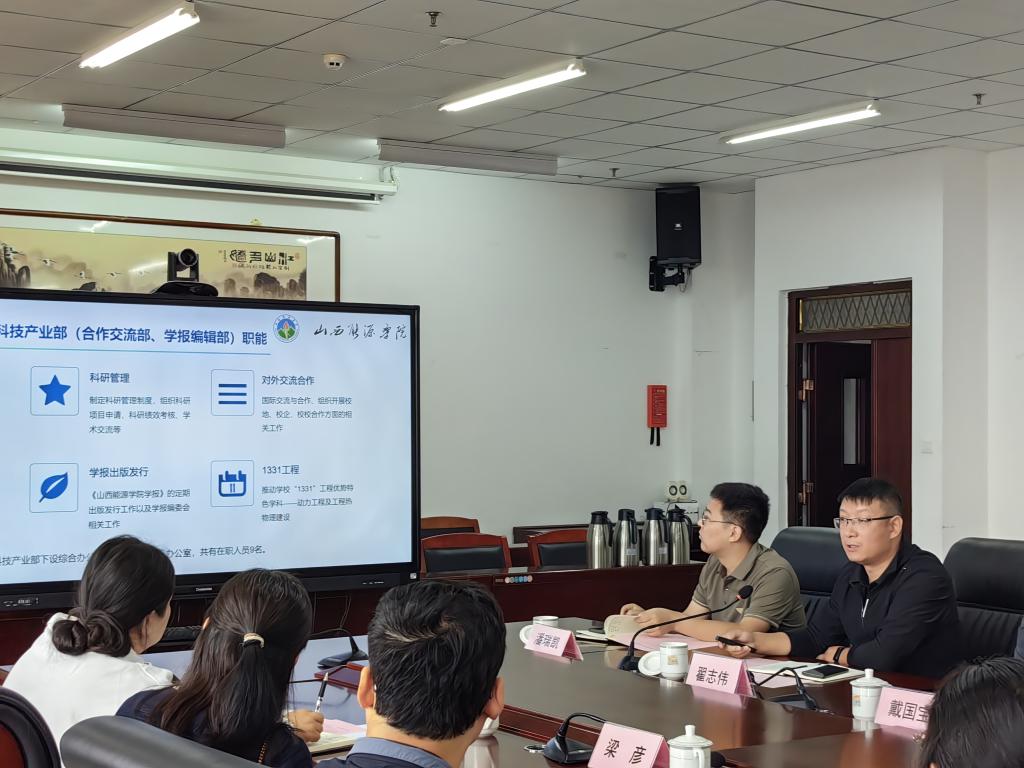 座谈会上,刘汉涛副院长代表学校对太原学院科学技术处董春娟处长一行的到来表示了热烈欢迎,向与会嘉宾介绍了学校的科研情况,并指出我校与太原学院有着相似的办学定位及特色,需要向太原学院学习先进经验。董春娟处长发言表示,两个学校应共同发展,互相学习,特别是能源学院在国家自然科学基金方面的突破值得学习和借鉴,希望此次座谈交流会能够取得真经,有所收获。