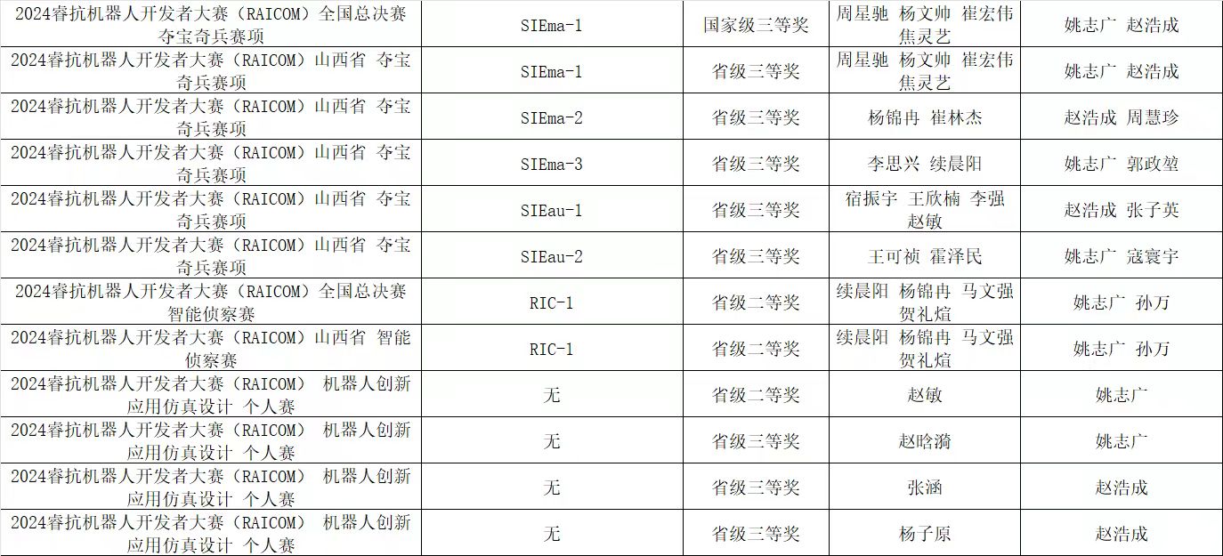 这些优异成绩的取得,离不开参赛成员们的辛勤付出和努力拼搏,他们在备赛期间刻苦钻研、不断尝试,克服了重重困难。同时,指导老师姚志广、赵浩成、张子英、寇寰宇、孙万和任晓霞等的悉心指导也起到了至关重要的作用,他们为参赛队伍提供了专业的知识和宝贵的经验,帮助队员们不断提升自己的能力。
