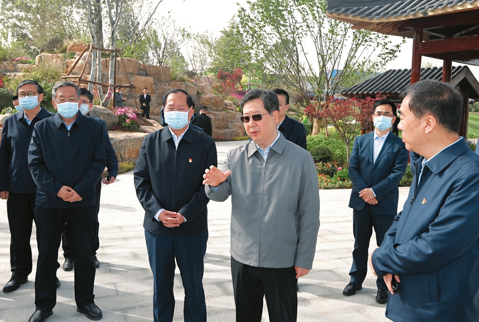 五月七日,省委书记楼阳生在晋城市凤城康养度假区听取文旅康养融合发展规划和重点项目汇报。本报记者李联军摄