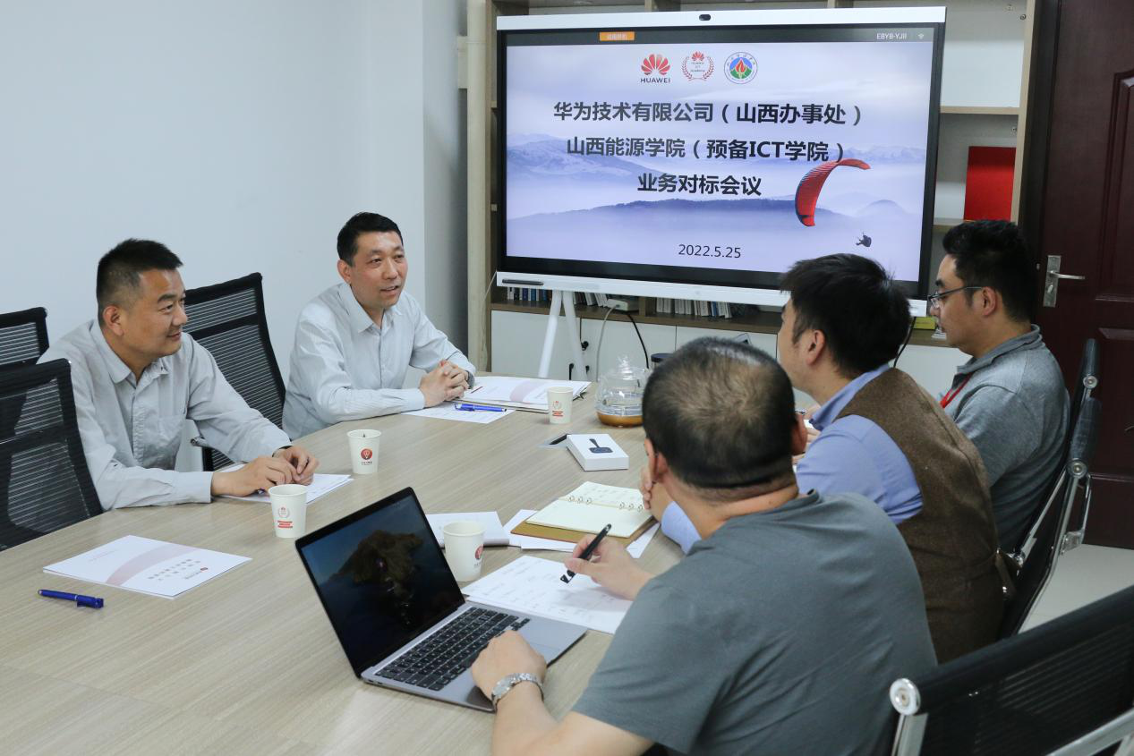 2022年5月25日,红宝石9999hbs在线登录与华为技术有限公司(山西办事处)在山西百思为科技有限公司共同召开了红宝石9999hbs在线登录华为(预备)ICT学院业务对标会议。