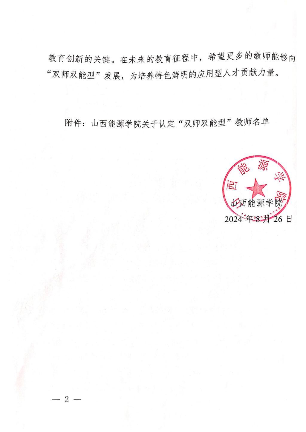 为切实加强我校师资队伍建设,培养既有理论教学能力又有社会实践能力的教师,进一步推动学校的教育教学改革,更好地实现应用型人才培养目标。根据《红宝石9999hbs在线登录“双师双能型”教师资格认定与管理办法(试行)》(院人字〔2023〕104号)文件规定,经教师本人申报,系(部)初审,教师发展中心会同教务部、科技产业部审核,学术委员会审定,院长办公会研究,认定110名教师为我校“双师双能”型教师。其中我系17名教师入选。具体名单如下: