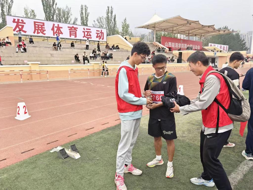 看!操场上的志愿者为了给运动员提供便利以及保证运动会的正常进行,他们一直在忙碌着,在操场上穿着小马甲的身影随处可见。