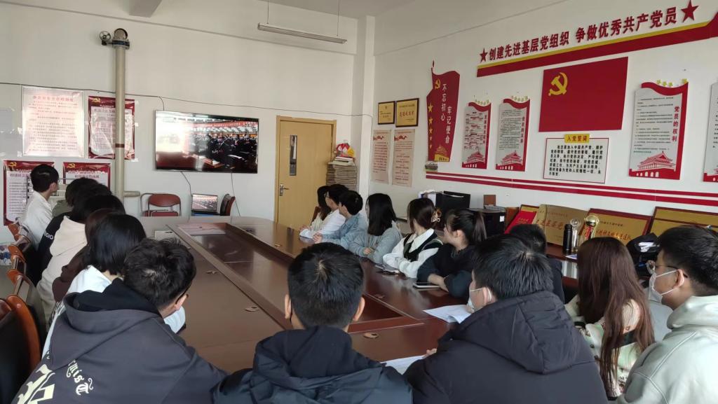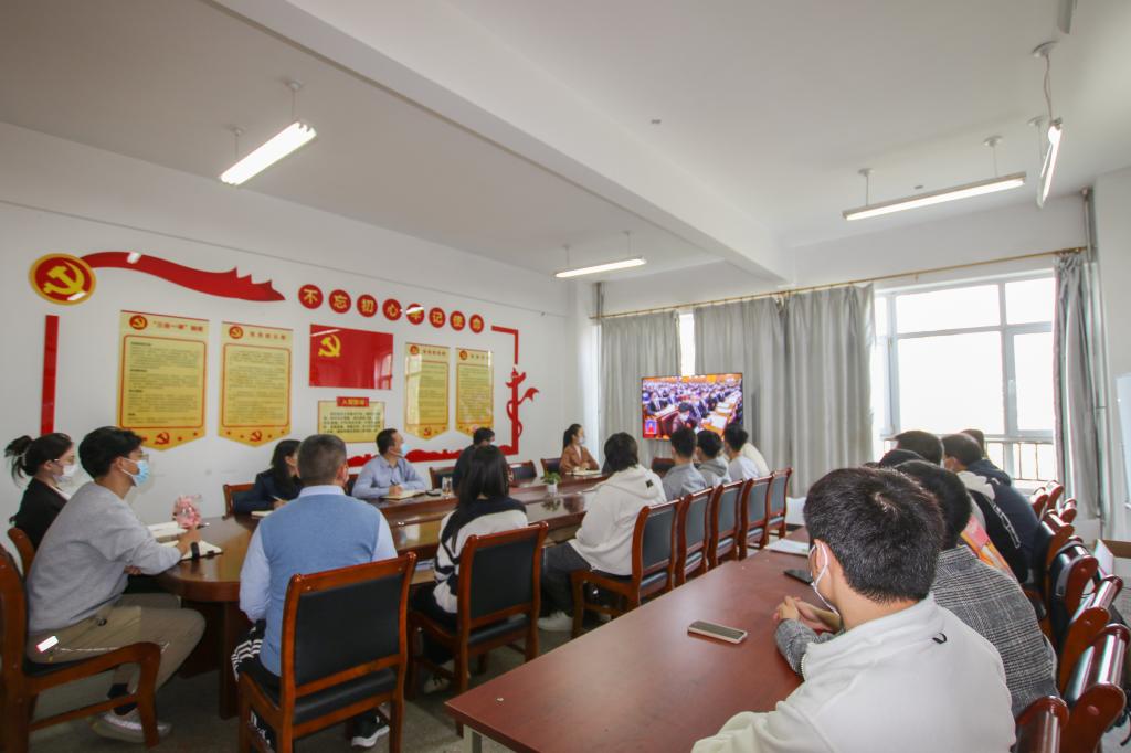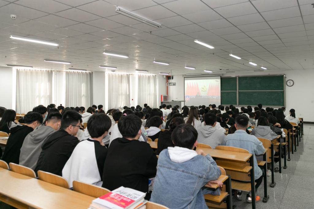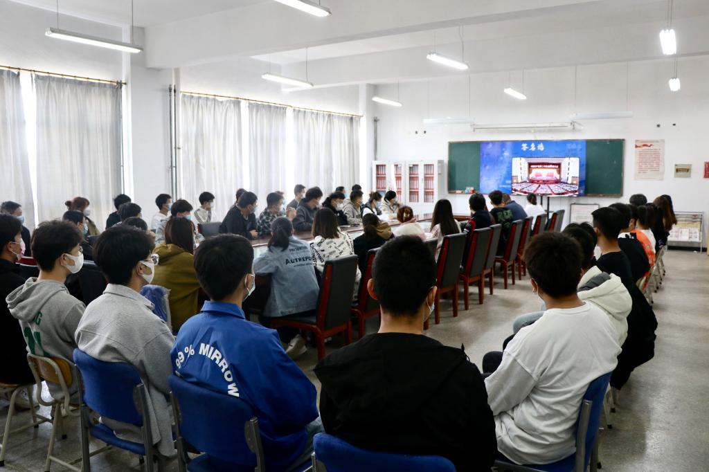 上午10时,学校党政领导、在校部门负责人代表、辅导员代表、学生代表在综合教学楼八层中会议室主会场进行了集中观看。
